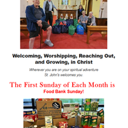 Please email us at saintjohnsbulletin@gmail.com if you'd like to receive our weekly email service. Know someone who doesn't have email and would like to receive our service? Please let us know and we'll gladly mail them one weekly.